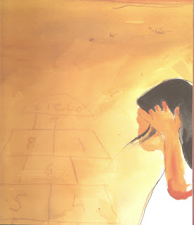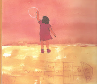 Era Marta la que ahora lanzaba la piedra y saltaba a la pata coja, una casilla tras otra, hasta... Sólo le quedaba el cielo; entonces, lanzó la piedra demasiado fuerte y ésta rodó lejos del dibujo que marcaba el juego de los niños.